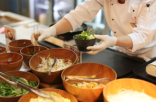 전문 쉐프가 즉석에서 정성스럽게 세계의 다양한 음식을 조리한답니다.