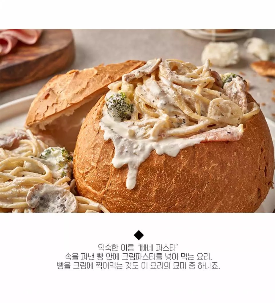 익숙한 이름 '빠네 파스타', 속을 파낸 빵 안에 크림파스타를 넣어 먹는 요리!