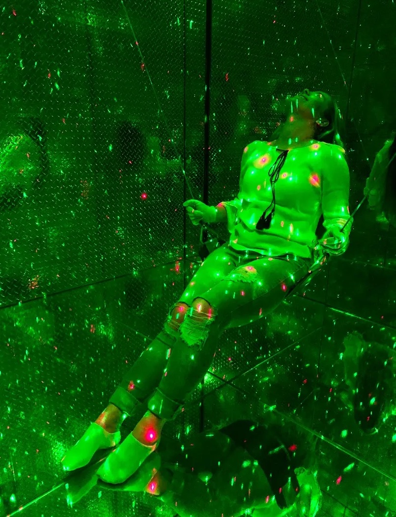 거울의 방에 들어가서 희미한 터널을 통과하고 특이하고 흥미 진진한 공간에서 이상한 질감을 느껴보세요