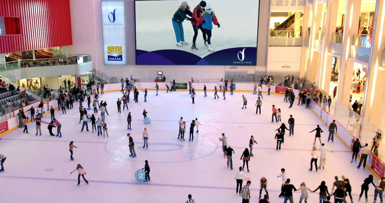두바이 아이스 링크의 시원한 표면을 가로 질러 활공하는 신나는 세션을 즐겨보세요