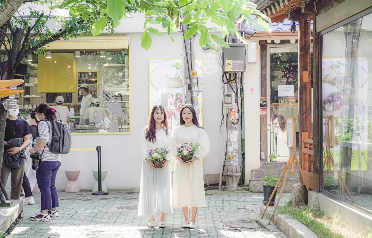 완성된 꽃다발을 들고 예쁜 기념사진을 촬영하며 인근의 익선동과 창경궁을 여행해 보세요.
