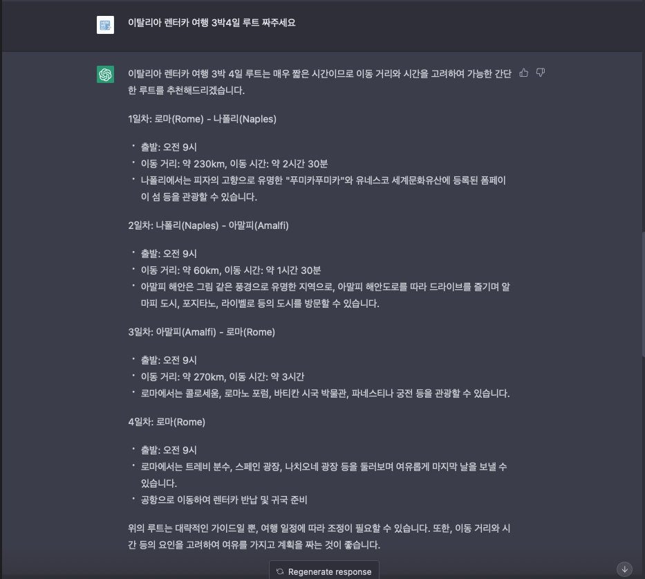20230226 ChatGPT가 짜준 이탈리아 3박4일 렌터카 여행 · 뜨거운청춘TV