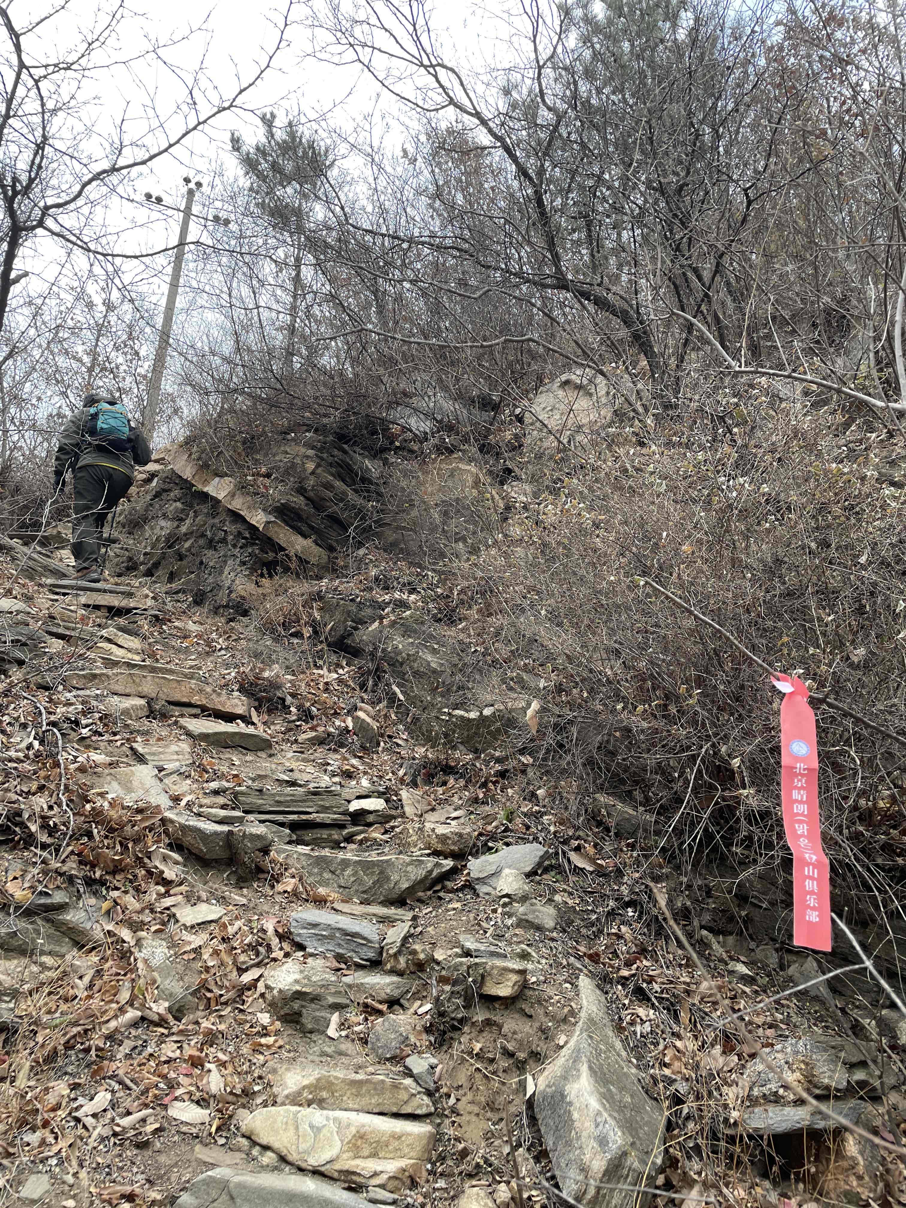 낙엽이 지고 겨울 산행이라 중간중간 코스나 길 찾는게 약간 어려움이 있었지만, 한글로 표기된 "맑은 산악회"의 표찰을 발견하고 코스로 진입하는데 정말 큰 도움이 되었습니다.