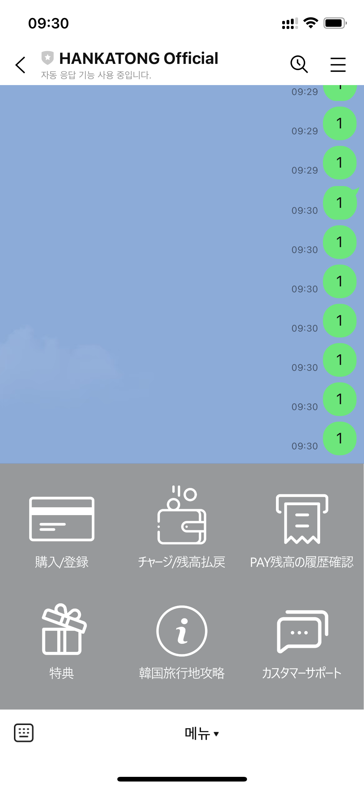 방한 일본인은 LINE 공식 계정에서 한카통 카드 구매 부터 카드 활성화, 카드 충전, 사용 내역 확인, 잔액 환불 등의 서비스를 받을 수 있습니다.