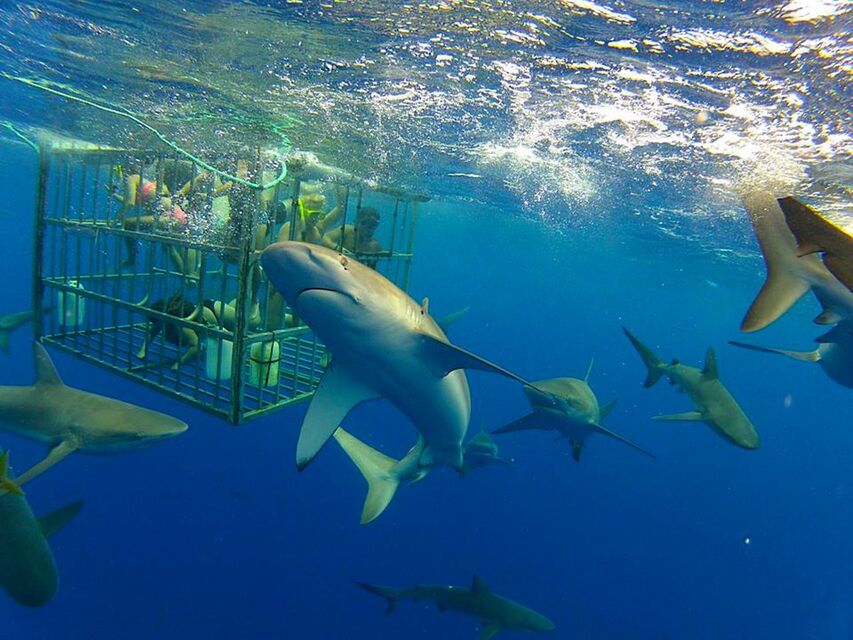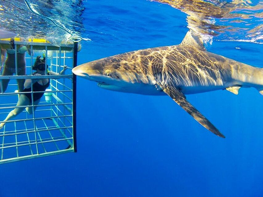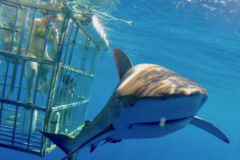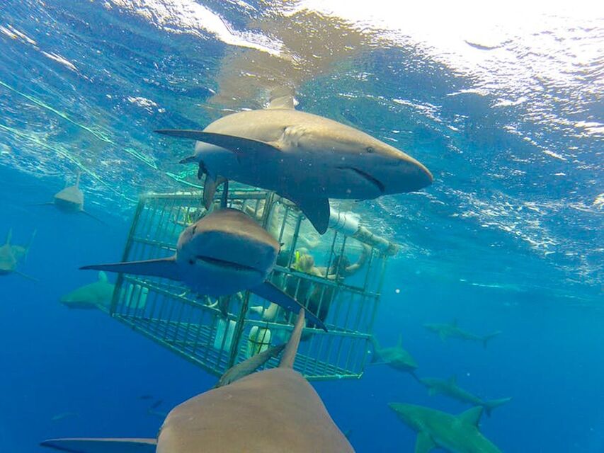 안전한 다이빙 케이지에서 상어와 함께 수영해보세요!