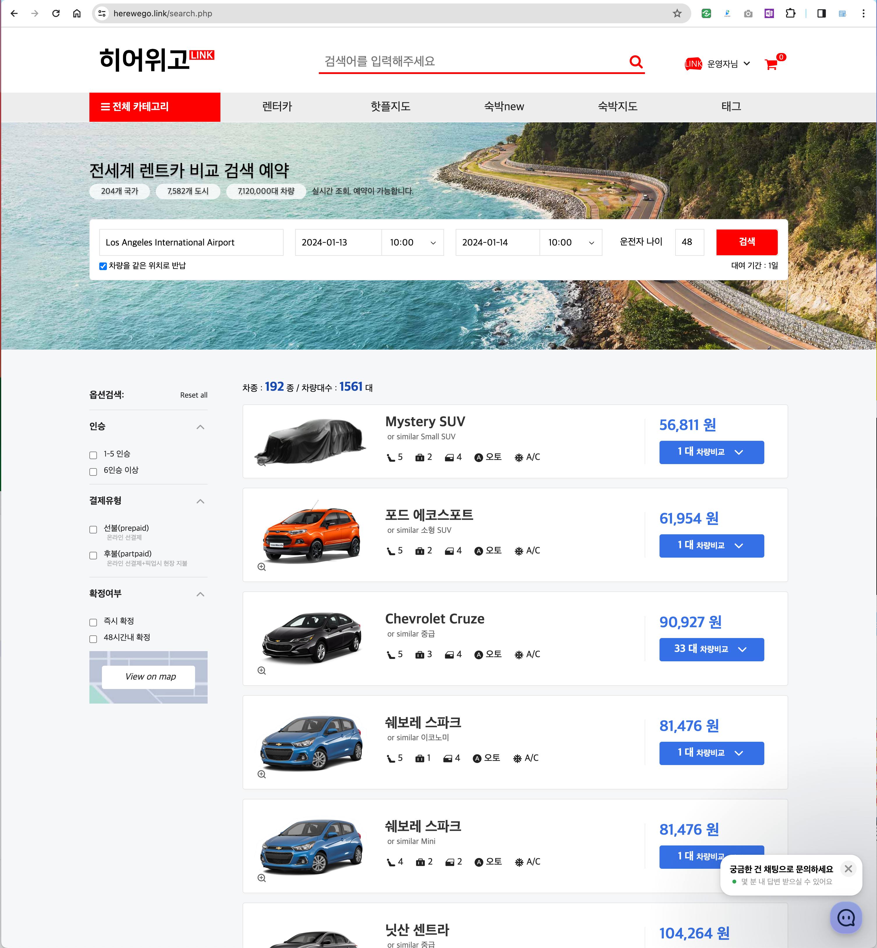 2. 원하는 차량 선택 후 결제를 진행 합니다.