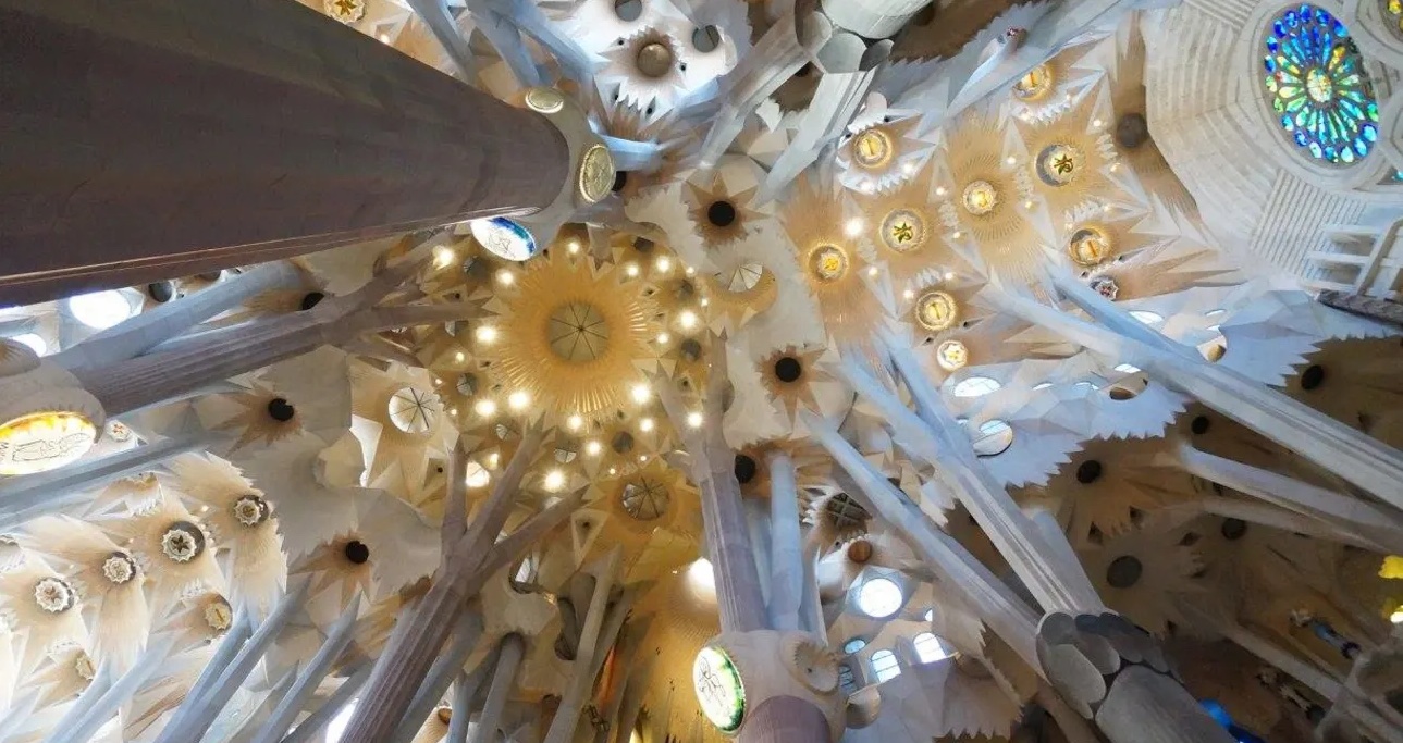 나무의 모습을 본딴 돌기둥 등 자연에서 영감을 받은 사그라다 파밀리아의 내부 건축 양식을 감상해보세요.