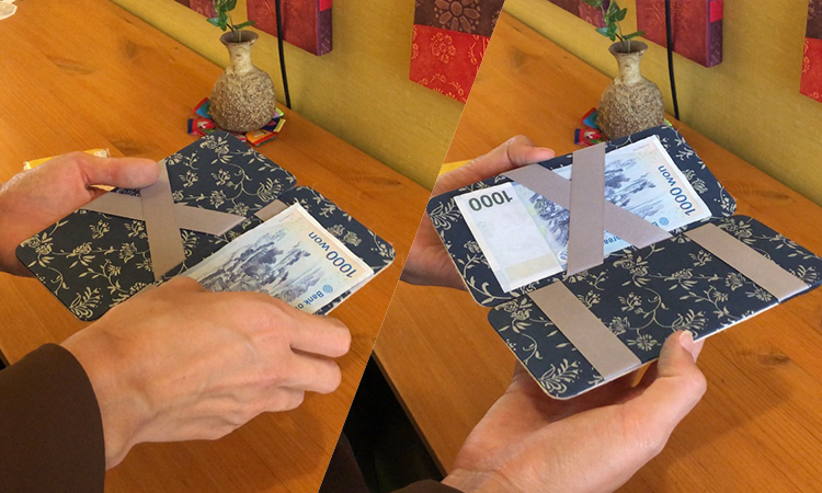 3. 돈을 올려놓고 닫았다가 다시 열면 돈이 고정되는 요술 지갑을 만들어보실 수 있습니다.
