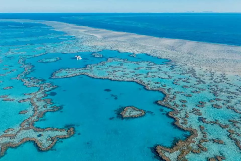 휘트선데이 섬에서 하나 밖에 없는 하트 산호초를 감상합니다.