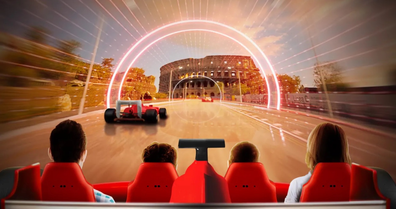 페라리 랜드의 가장 빠른 롤러 코스터를 포함한 16개의 빠르고 격앙된 놀이기구를 감히 타보세요.